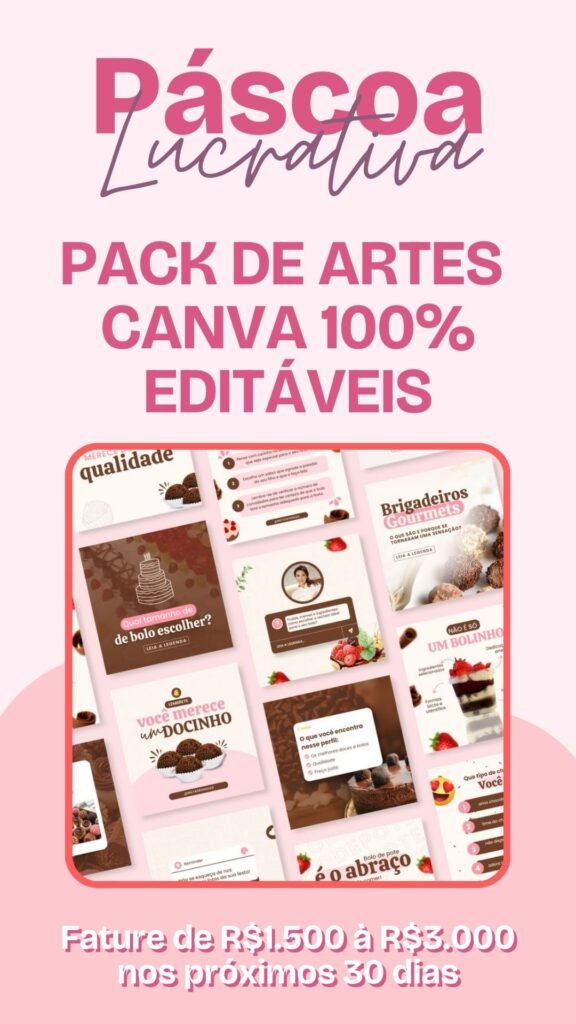 E o Pack Páscoa Feliz 2025 oferece acesso a vários modelos no Canva, feitos para você ter um catálogo capaz de despertar o desejo logo no primeiro contato, valorizar seus produtos, atrair clientes de qualidade e impulsionar suas vendas nessa Páscoa.